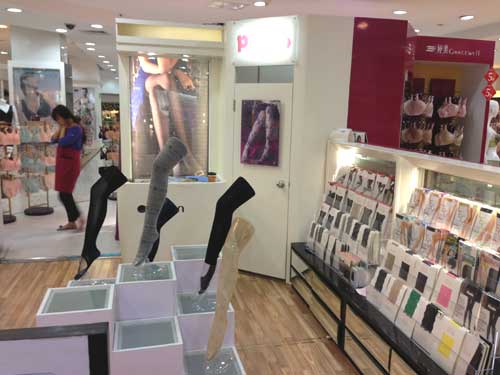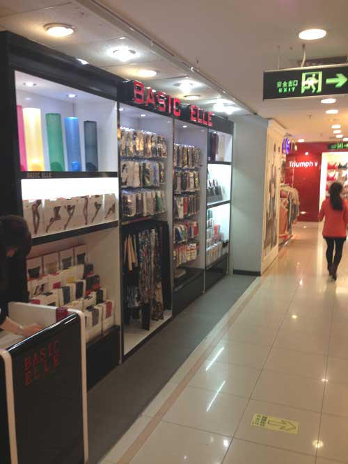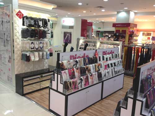 輸出先1:四海通達貿易会社 主な商品:靴下、ストッキング等↓ 中国全国のデパート店展開、直営店5店舗、提携店10店舗、順次拡大中・・・ 福州直営店↓