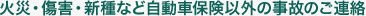望月商事はあいおいニッセイ同和損保の損害保険代理店です。 万が一、事故を起こした際もご安心ください。あいおいニッセイ同和損保は365日・24時間いつでも事故受付を行っています。 事故のご連絡先↓ |